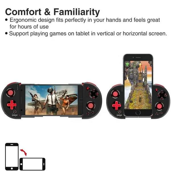 При этом, если что, контролер держатель работает на расстояние от телефона по блютузу т.е телефон можно поставить в импровизированную подставку на столе как вертикально так горизонтально, а контролер просто держать в руках без телефона.