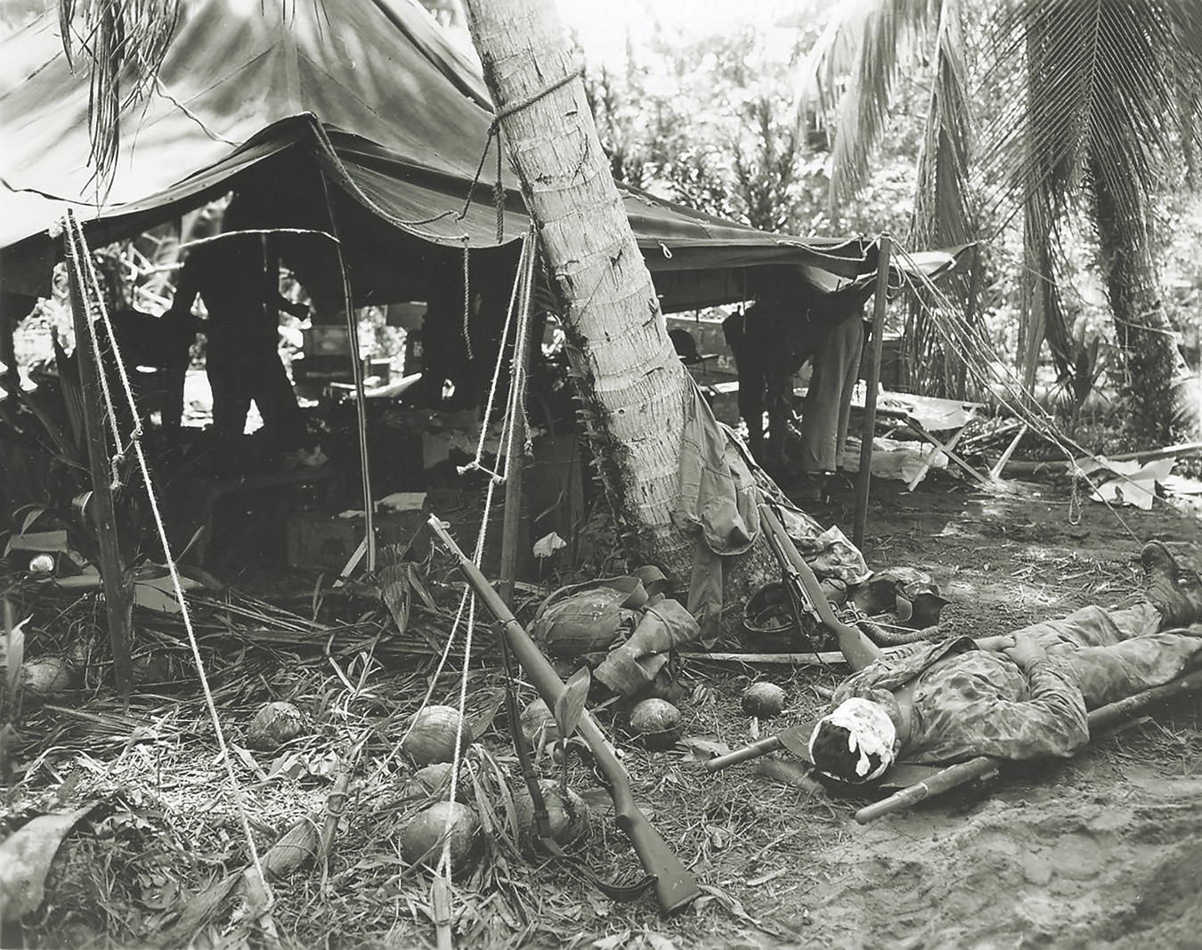 >>1215317 В июне 1944 года 105-й пехотный полк совершил высадку на остров Сайпан. 22 июня полковой полевой хирург был ранен осколком, и Саломон, для которого как для дантиста работы в условиях боевых действий не было, вызвался его заменить. 4 июля он участвовал в высадке 2-го батальона 105-го полка на побережье рядом с деревней Танапаг. Пройдя около 800 метров от берега, батальон увяз в японской обороне и в ожидании контратаки начал окапываться. В 5 часов утра 7 июля остававшиеся на острове японские силы (от 5 до 6 тысяч солдат) были брошены в последнюю контратаку на позиции 2-го батальона. Всего через десять минут после начала атаки в полевом лазарете Саломона, расположенном в 50 метрах от передней линии окопов, уже собралось больше 30 раненых, и пока он занимался самыми тяжёлыми из них, японские солдаты добрались до лазарета.