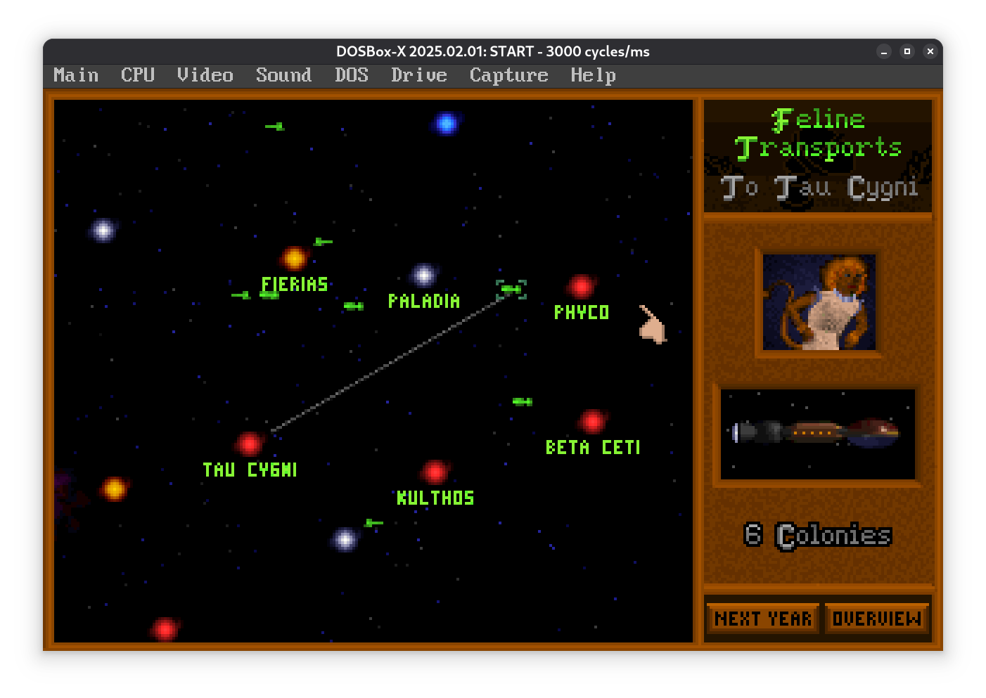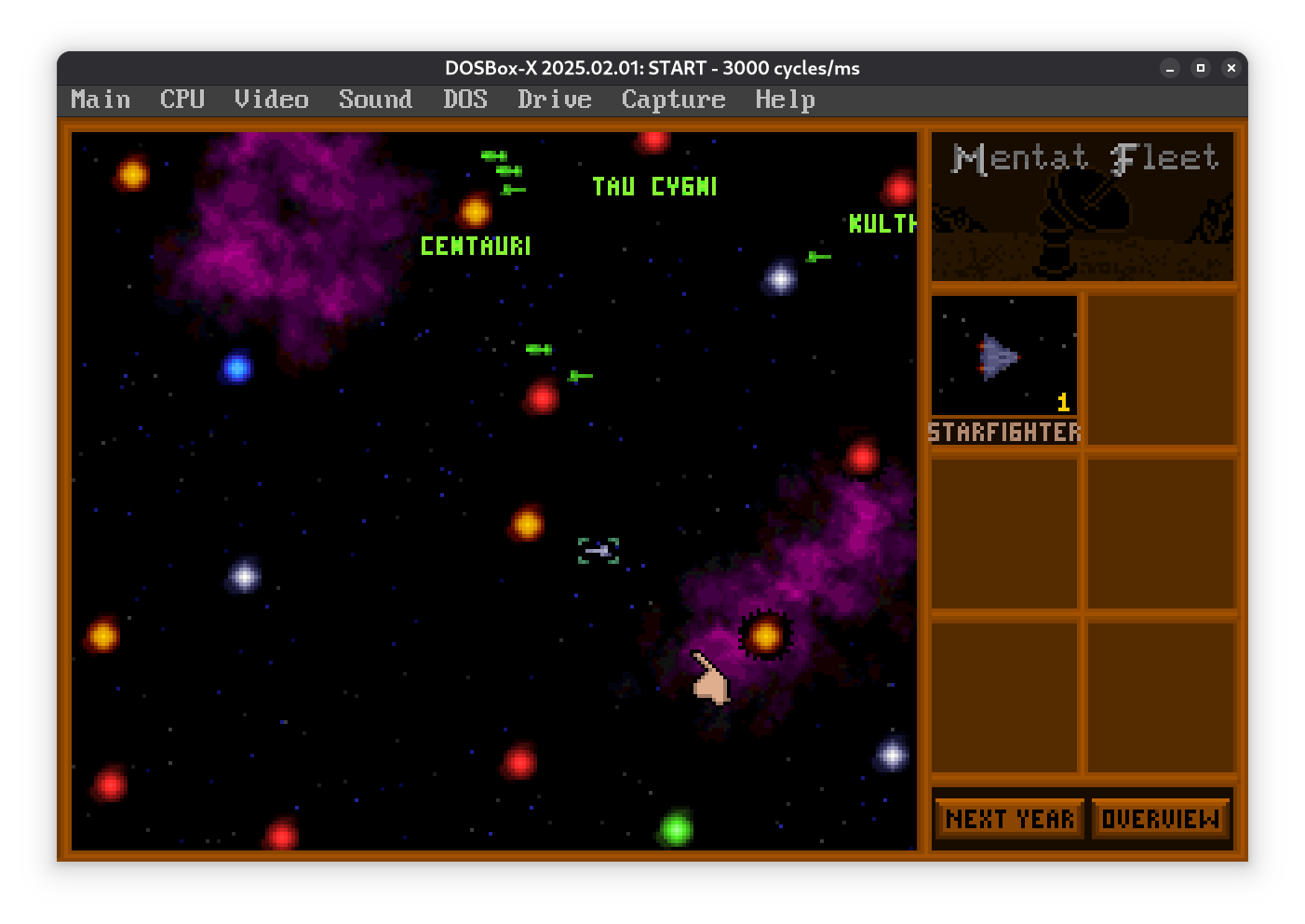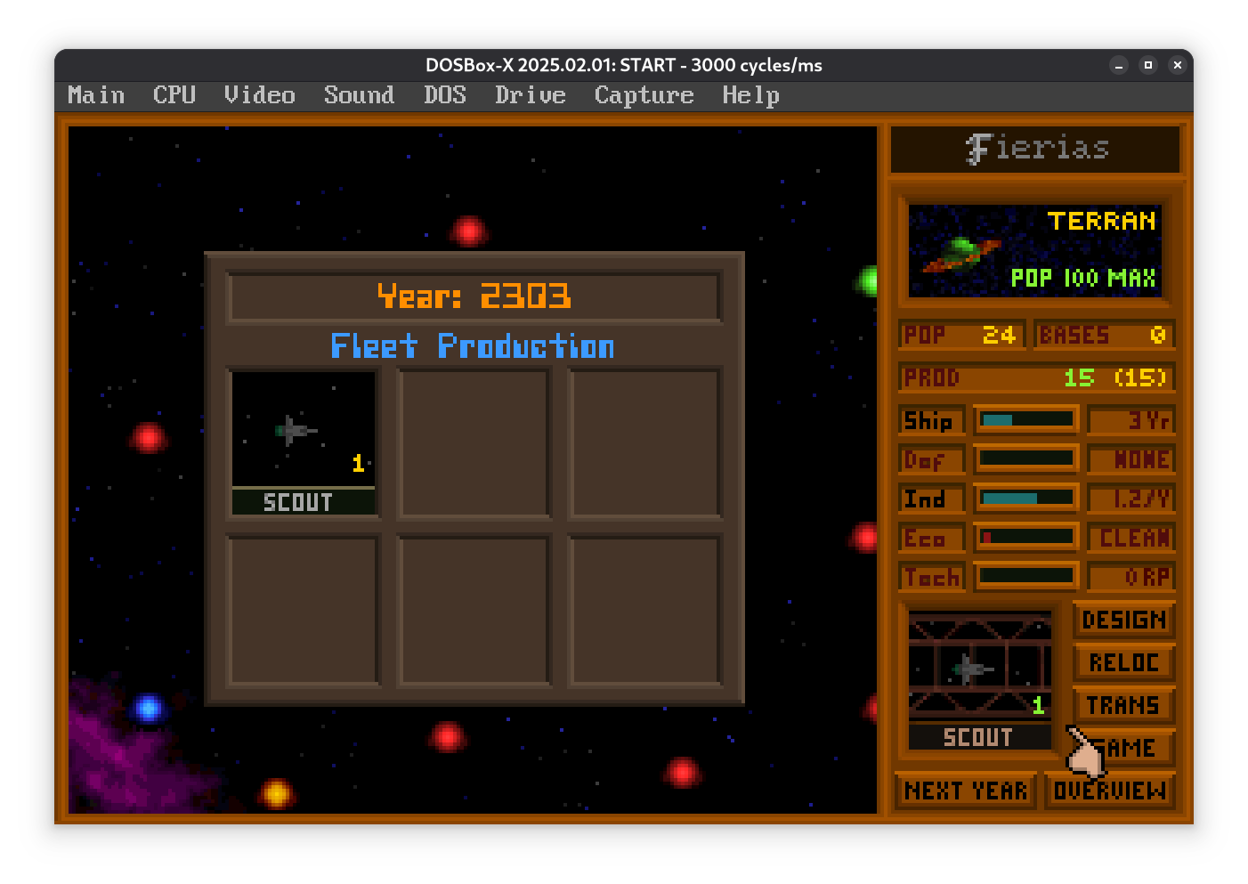 В этой версии не дают начальных кораблей, так что в первый год просто построил заводик, и потом за пару лет разведчик.