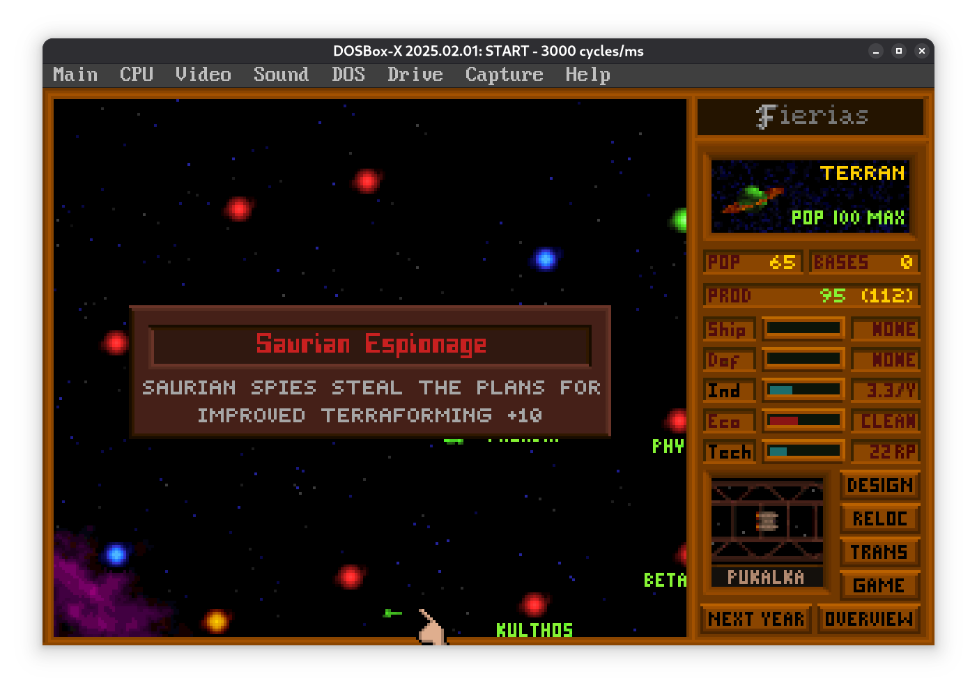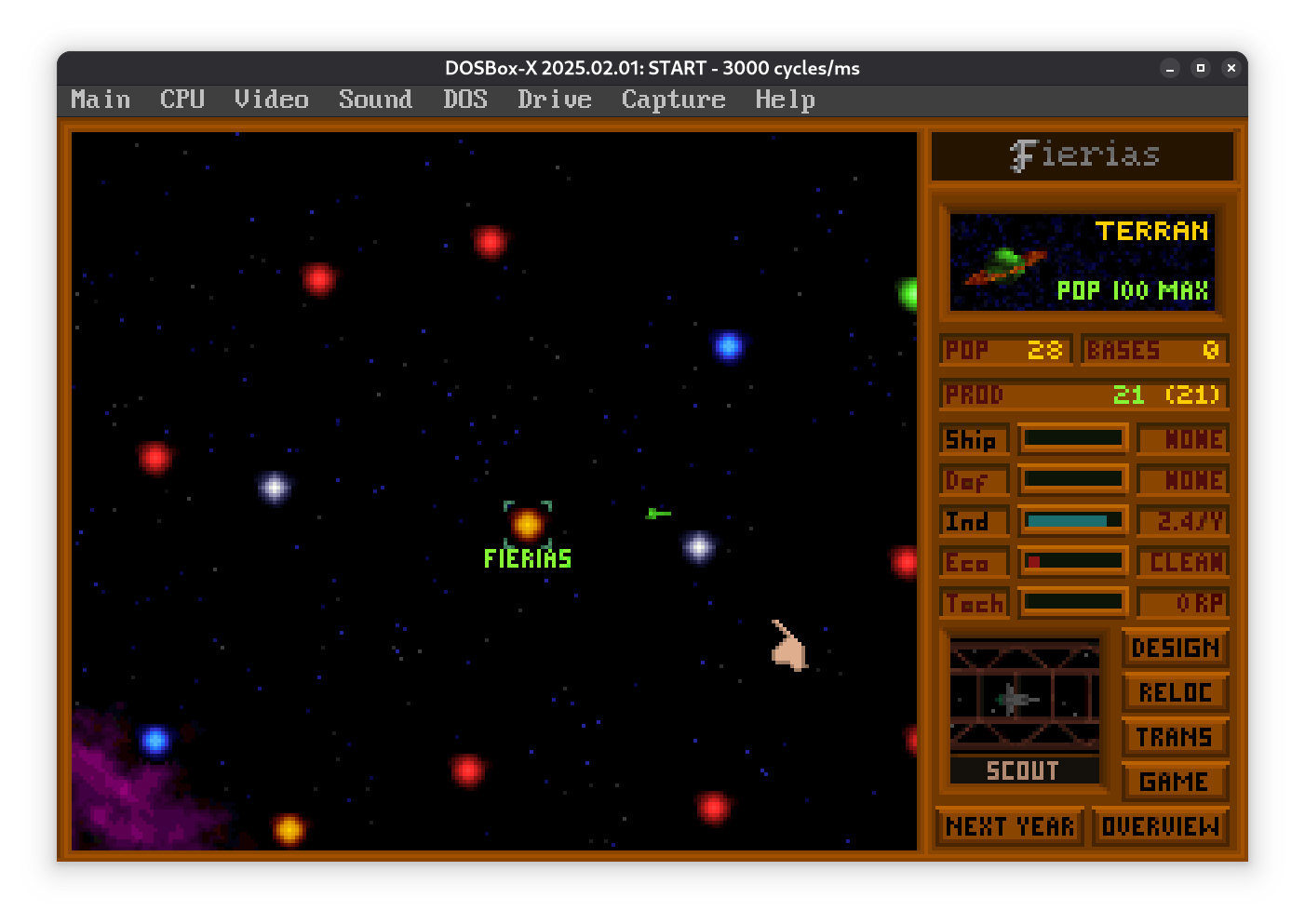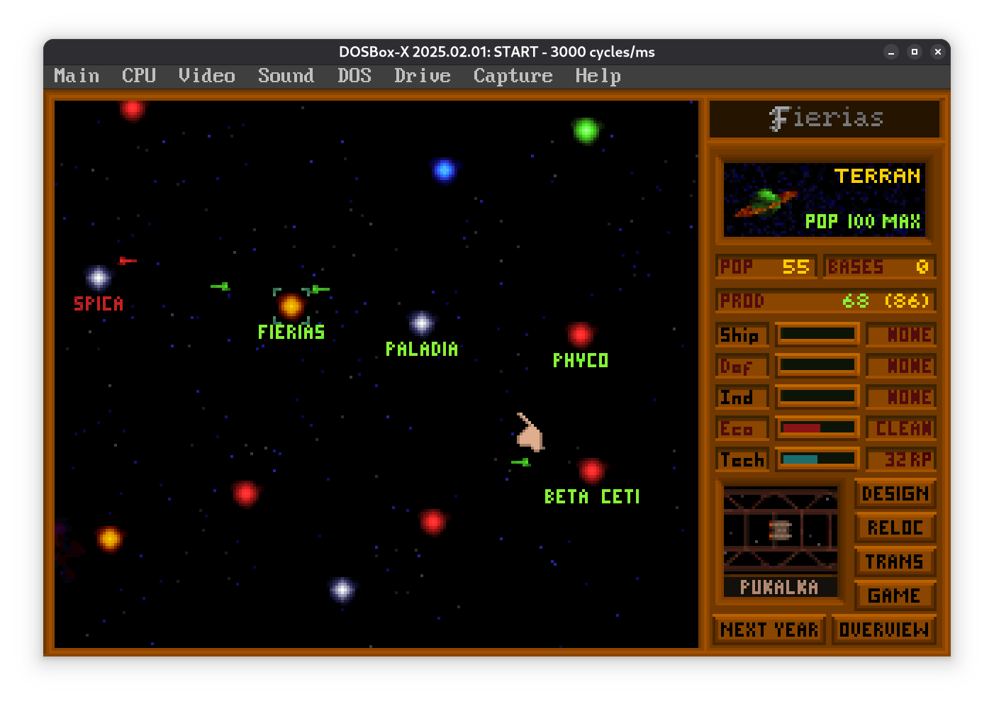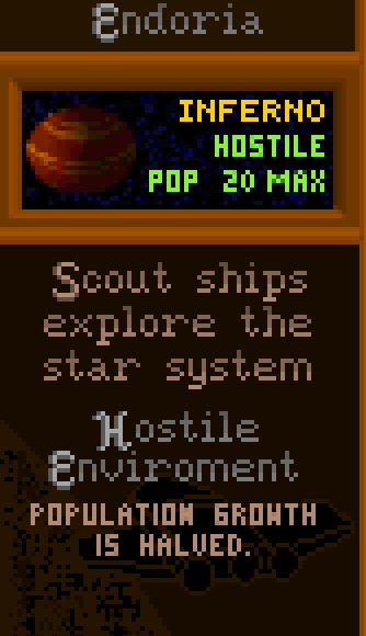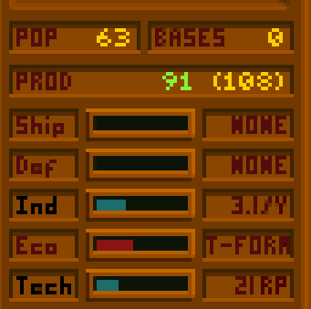 Пока разведчик летит, планета потихоньку размножается (Population = 1 миллион населения) и строит заводы (Industry). Заводы повышают загрязнение, так что придется выделить часть ресурсов на экологию. Если не следить, планетка подпортится.