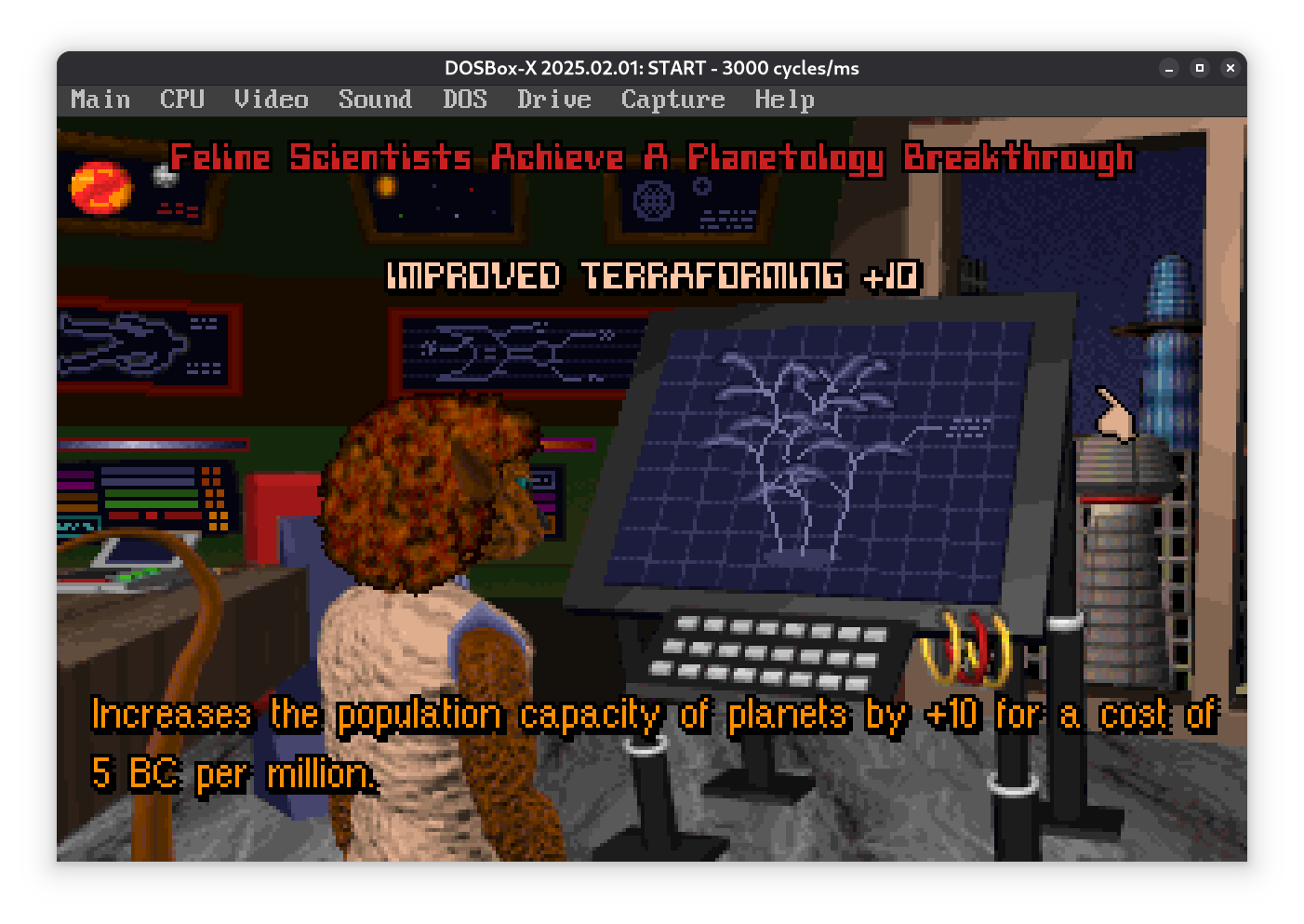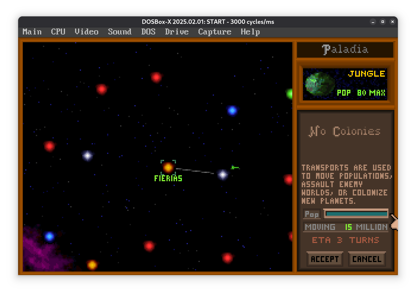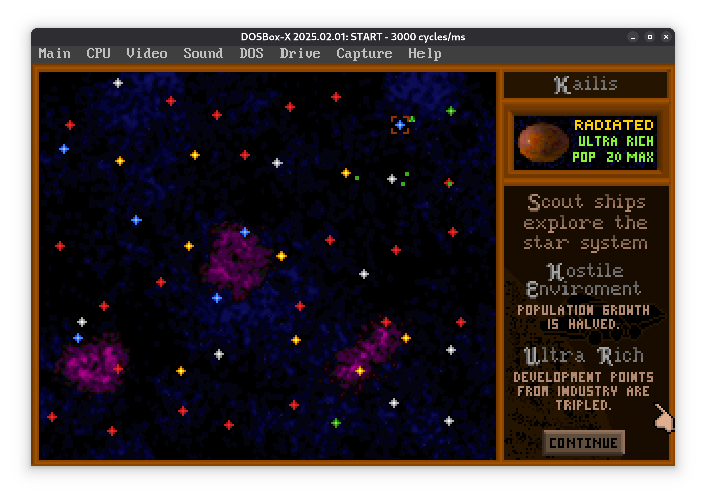 Пока разведчик летит, планета потихоньку размножается (Population = 1 миллион населения) и строит заводы (Industry). Заводы повышают загрязнение, так что придется выделить часть ресурсов на экологию. Если не следить, планетка подпортится.
