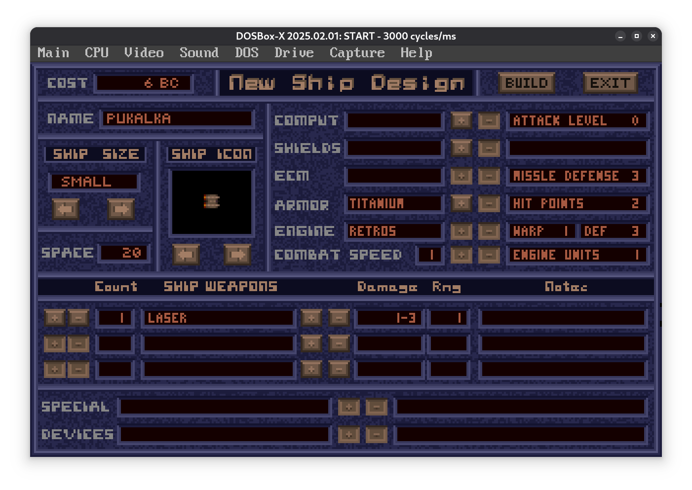 Немного решил покачать технологии. В этой версии немного отличается, посмотрим что выпадет, в первую очередь интересует разработка двигателей большего радиуса для освоения.