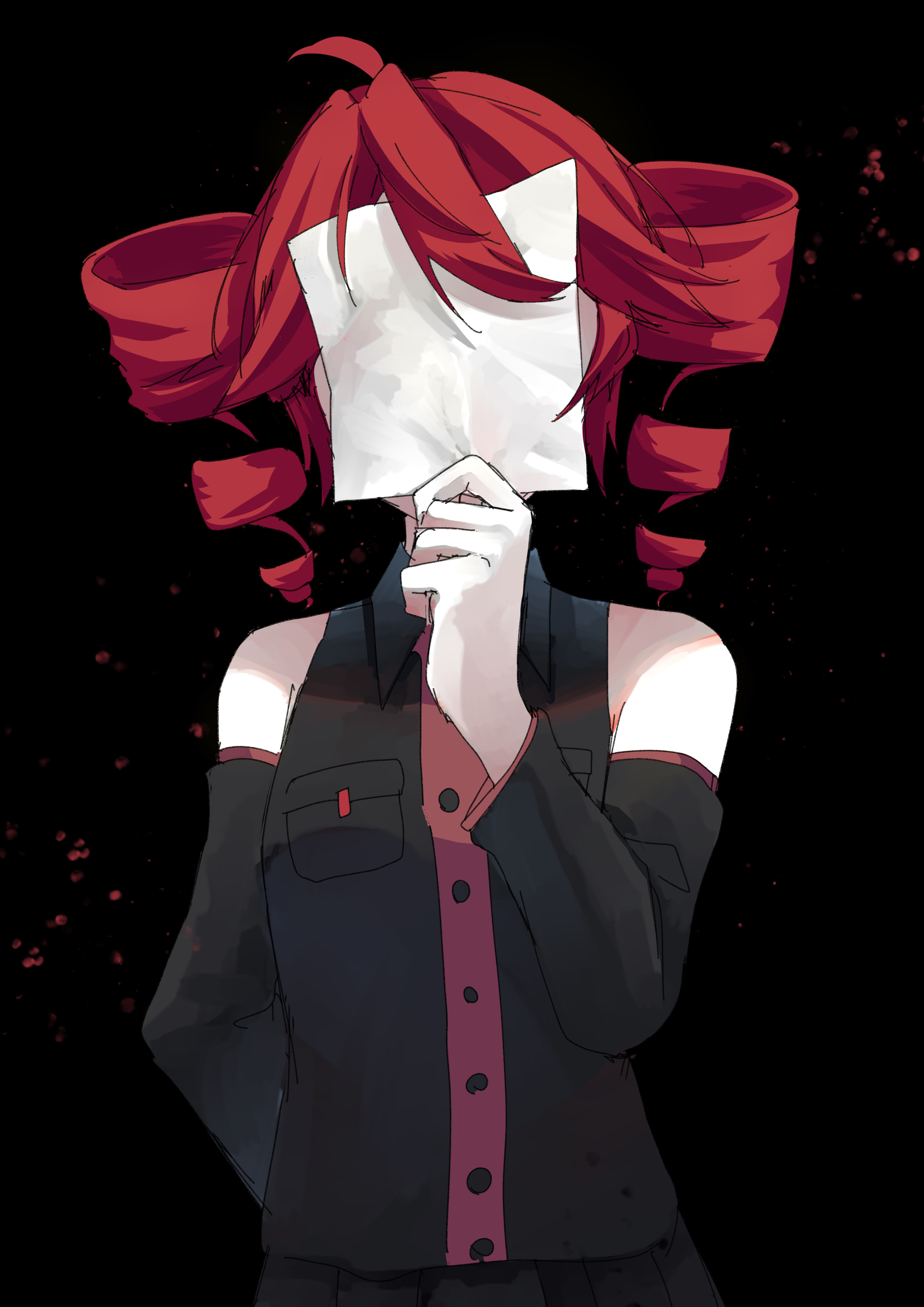 >Я в детстве видел клип жуткий, где ирл кто-то ходил с аниме головой под жуткую песню, возможно вокалоид, но нереально найти... Можешь описать голову?