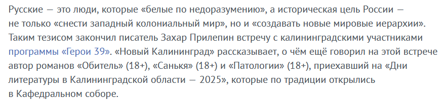 - Хохлы на дорогах есть? Мне проехать в Гири нужно. - Мы их никогда не видели и уже давно выдавили. И ведь этот военкор, зараза, знает методичку идеально, знает, что у него спросят и знает, что ответит. Но ещё ни разу ни один из нас ни жестом, ни словом не показал, что каждый из нас знает сценарий. Бывает военкор постит финки НКВД вместо сводок, когда я захожу на канал, тогда я проверяю предыдущие посты, он равнодушно снимает рекламу БАДов, наебывает гоев и возвращается к постингу методички: - Что вы хотели? - Мне нужна информация о ВСУ под Курском. - У нас их нет, в области тихо, всех выдавили. - Жаль.
