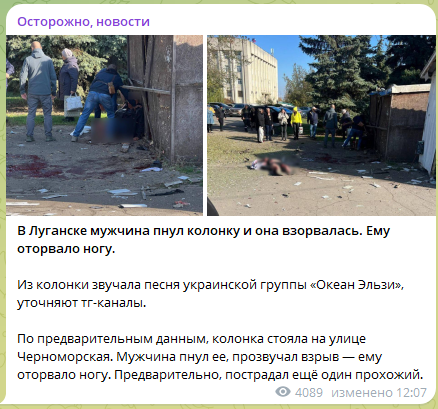>>1156073 я бы сказал что оно добегается если бы было чему бегать тцк пока по домам особо не шариться да и безногого не тронут очевидно ему приятно когда полноценные люди умирают поэтому маятник ненависти раскручивает как может поддувая с обеих сторон какая еще может быть радость в жизни у выродка?