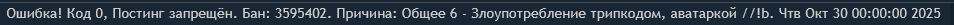 Дополню, на меня кажется админ обиделся за что-то, я хз. Я просто отвечал ОПу в его треде на вопросы, которые он мне задавал и меня одна сука забанила в /rf/ за нерелейтед. Я не нарушил ни одного правила, по моему мнению. Даже мимолётных или косвенных оскорблений не было и жирного троллинга. Такое чувство, что меня преследует модер-сталкер, лул.