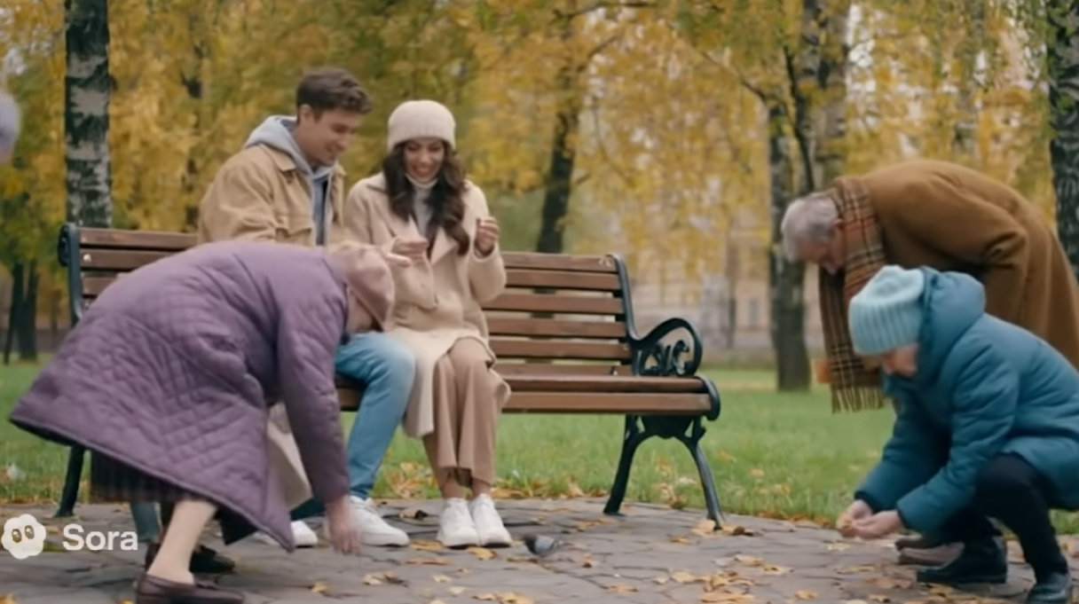Еще немного для сравнения Грок и Сора. Для Грока промт слегка обрезал, ибо 6 секунд. И у Соры это еще удачная генерация вышла, где все не сидят истуканами