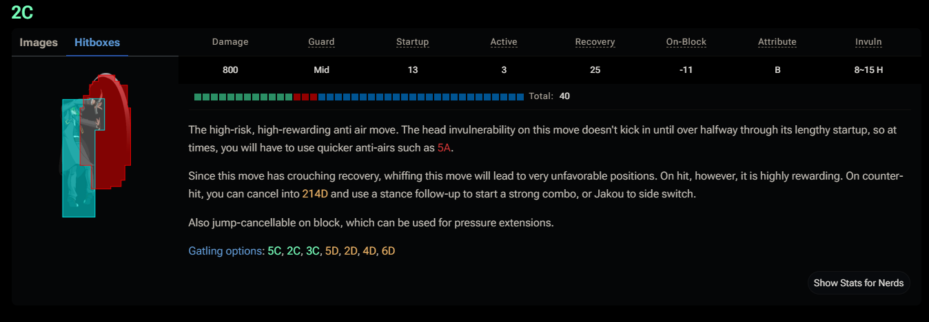 >>616563 На бумаге у меня тоже неплохой антиэир. Но чморумивский выигрывает из-за меньше стартапа и, главное, хед инвуля с близкими, диагональными хитбоксами, поэтому его можно против прешурущего чела использовать. Если кто-то прыгает, прессуя Хаку, мне нечем отвечать кроме блока или 5А, которая чисто горизонтальная атака без инвулей.