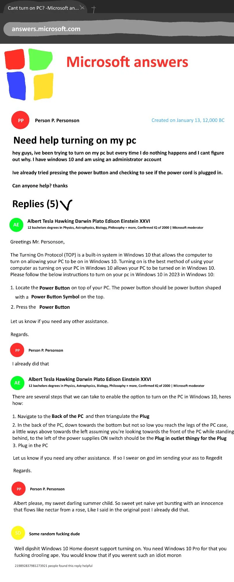 Етить у меня странная фигня была с пекой. Она тупа сдохла, как-будто питание отрубилось. Я проверяю на распределителе - питания как-будто нет, подключаю другую штуку к распределителю - питание есть, чекаю пеку - питания нет, потом внезапно оказывается что есть и всё со скрипом оживает. Я чёта не понял даже из-за чего это было.