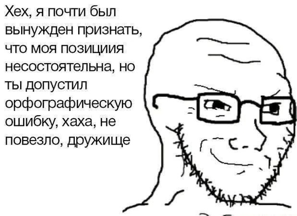 Ну а в остальном ты просто занимаешься коупингом и оправдываешься, почему ты затерпел базированные взгляды Шанафага насчет пиздомразей. Вот и все.