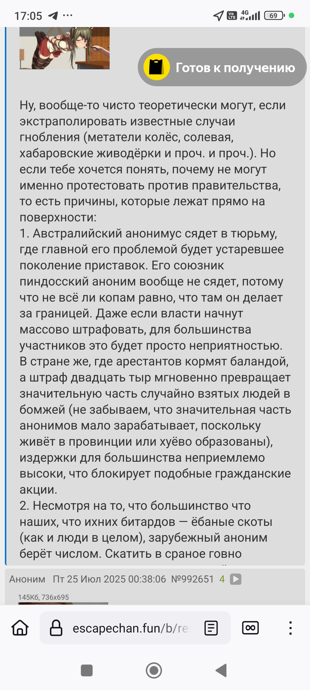 Я конечно понимаю что похуй на гакал на вг но там солевой уже во всю беснуется. Зачем этот тред если уже шиз там угнал тред в вг и катит чем попало? Почистить нужно от шиза если не хотите выдавить остатки из за приступа одного питерского петуха на проксях. Или вообще закрыть тред раз не хотите заниматься им и не нужны хотя бы редко туда приходящие 1,5 постера. Этот шиз был причиной почему сидели на эндча пока оно бесилось на нульче и хороче после чего на тех боодах вообще запретили тред.