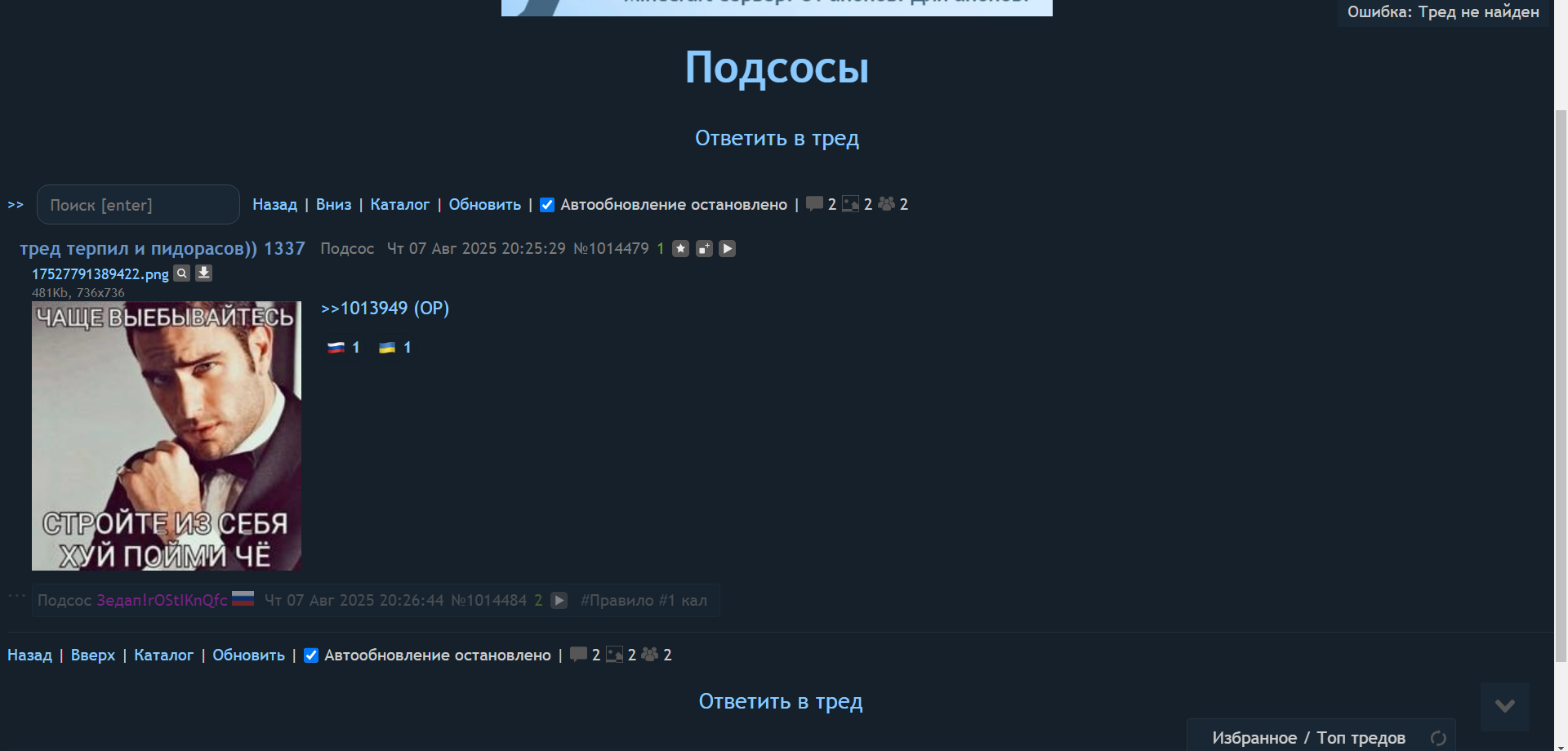Проситель ID: Сильный Тони Старк Чт 23 окт 2025 02:02:32УДАЛЕНО№1155780315