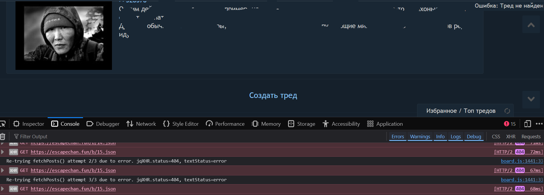 Сложный кейс. Сразу скажу у меня кукла. Кукла показывает превью поста даже с другой борды, например находясь в /d можно увидеть >>1244577 (OP) и там есть реакция. Так вот при нажатии на реакцию, пишет ошибка, наверное в url где то подставляется текущая доска, а не та, куда запрос.