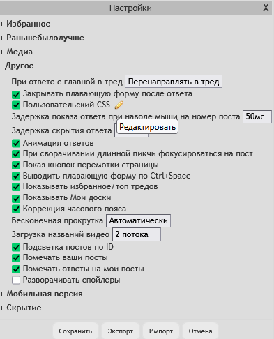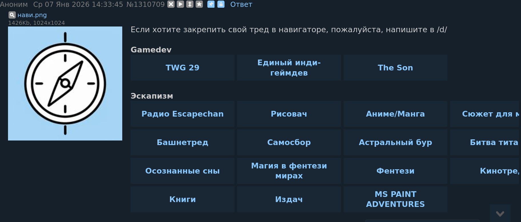 Добавь уже меню с избранными тредами для мобильной версии Стрелки для быстрой навигации по странице вверх и вниз (не в треде, а на главной), тоже для мобильных Это же две строчки в ксс
