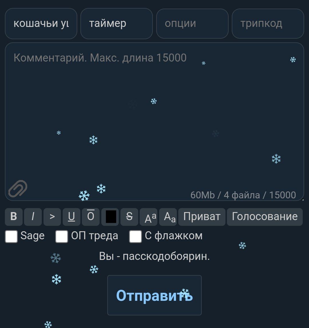 ебучие снежинки не отключаются после того как отключил их в настойках и перезагрузил страницу! скрипт ебаный продолжает работать! отключил через юблок! исправьте! или удалите их вообще!