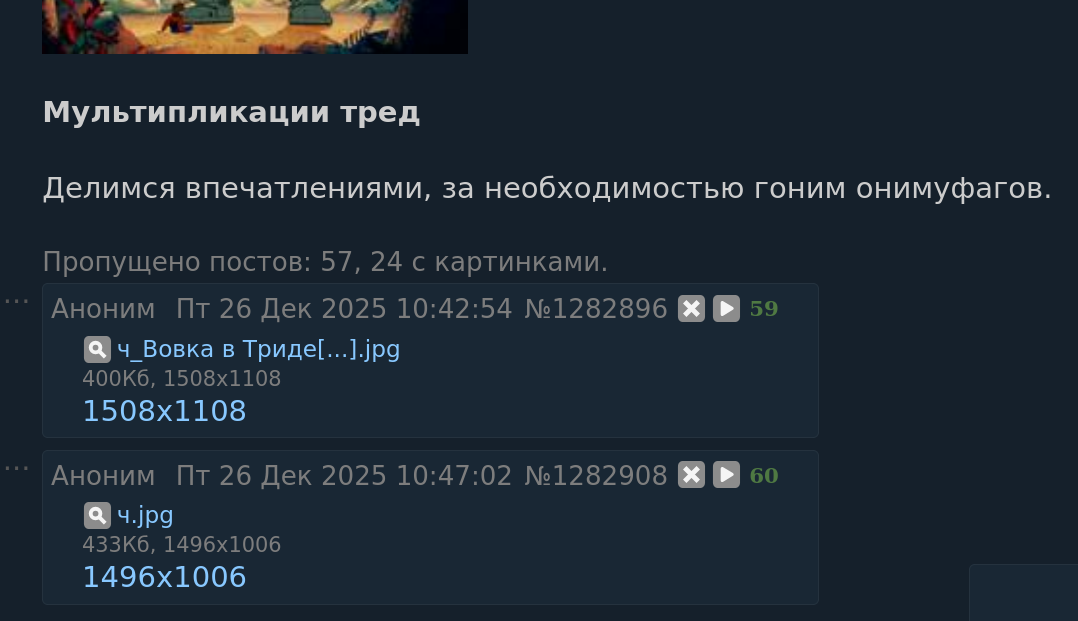 >>1165778 >>1166040 В том разделе регулярно очищаются или удаляются старые треды, так что не критично. Но спасибо за бдительность и помощь с репортами, они чаще всего полезны.